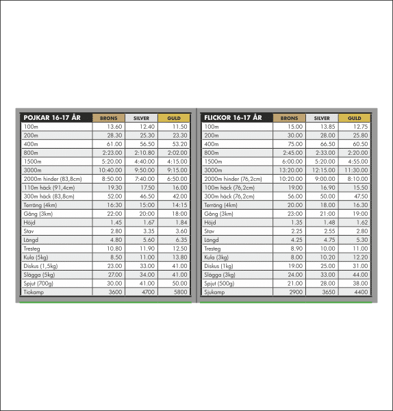 Svensk friidrott har tagit fram olika barn- och ungdomsmärken för att inspirera och motivera till varierad träning och tävling. Märket finns för fyra olika åldersgrupper: